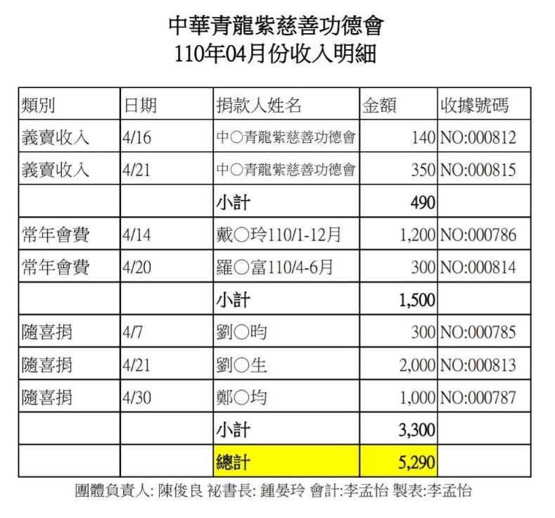 110年4月收支決算表與收入明細表
