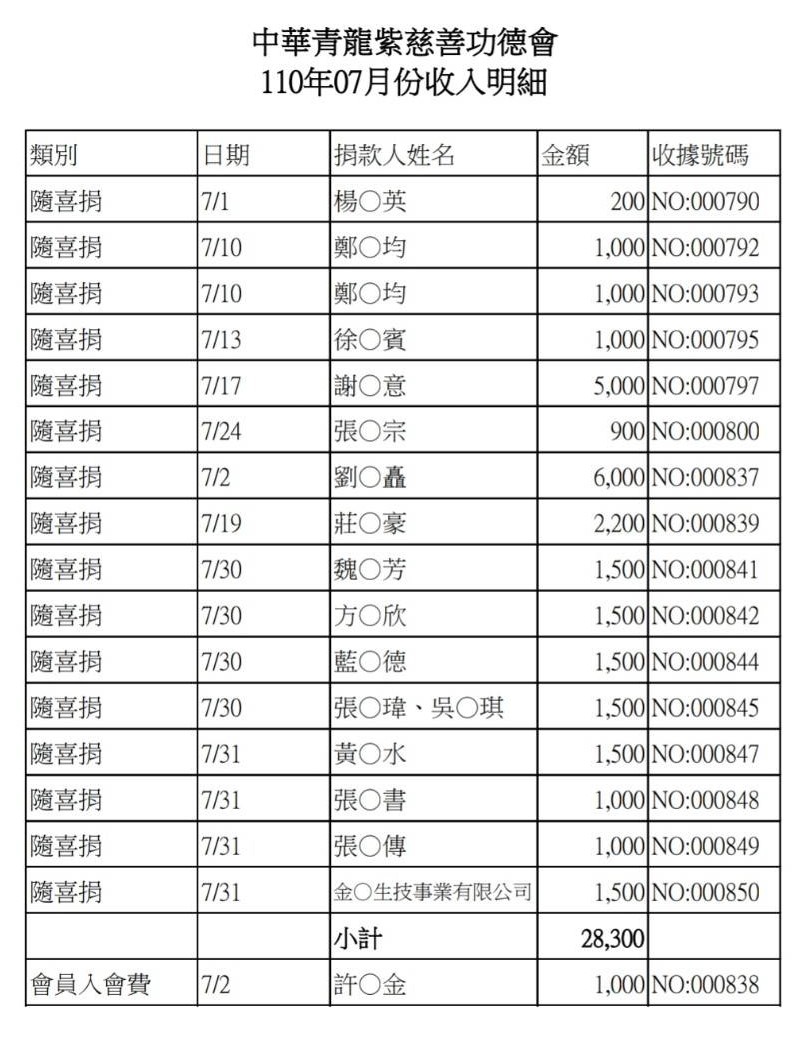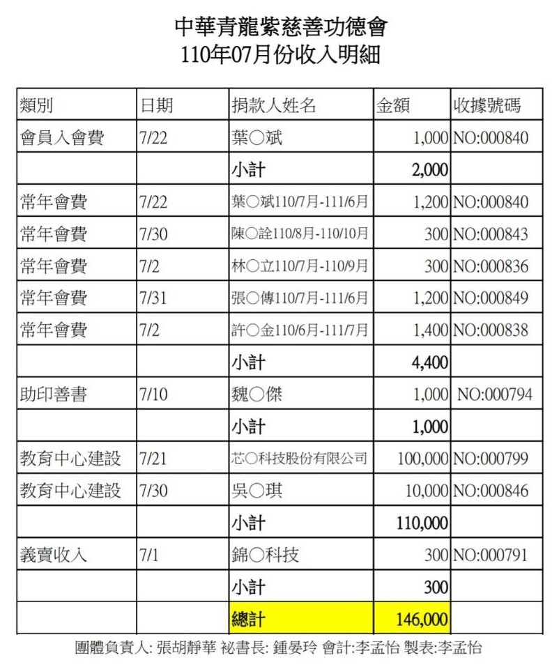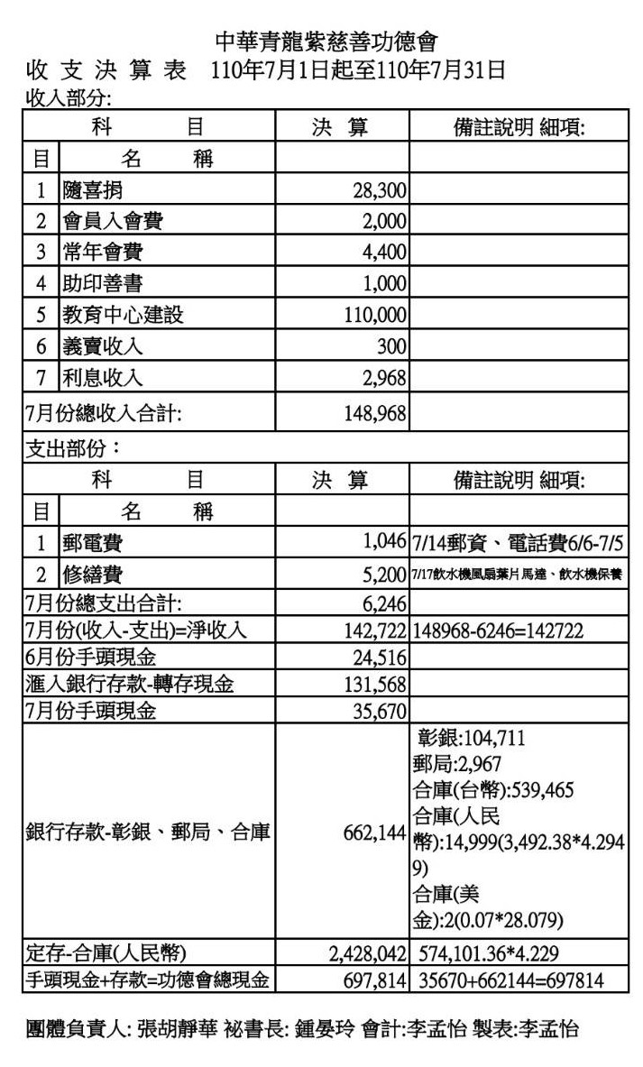 110年7月收支決算表與收入明細表