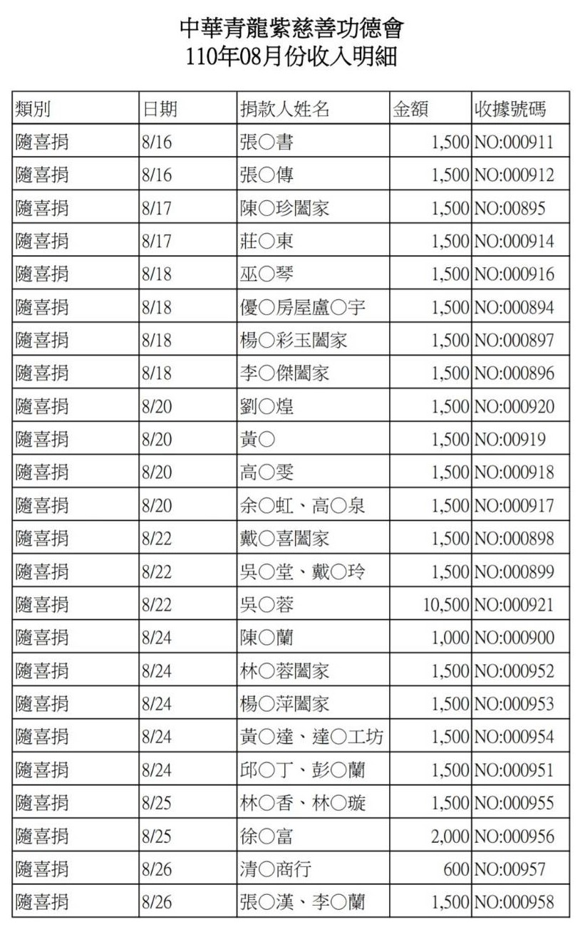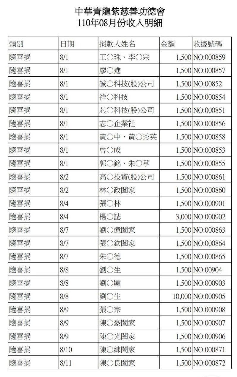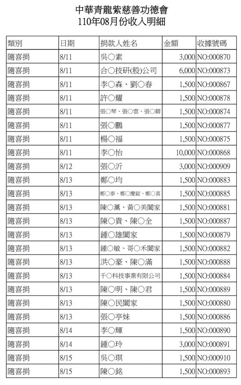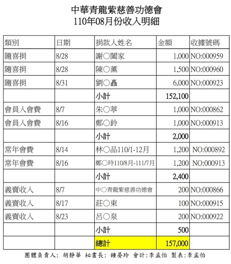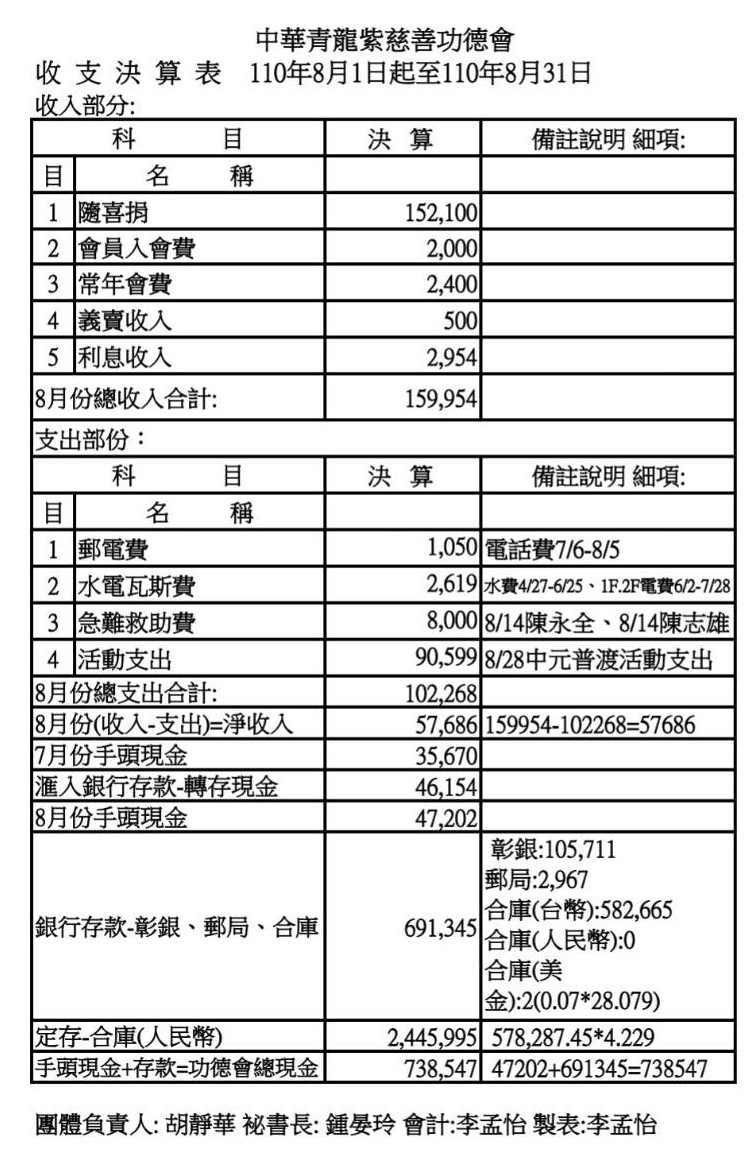 110年8月收支決算表與收入明細表