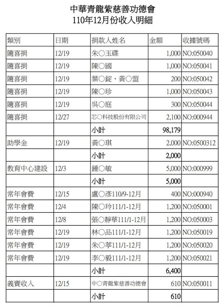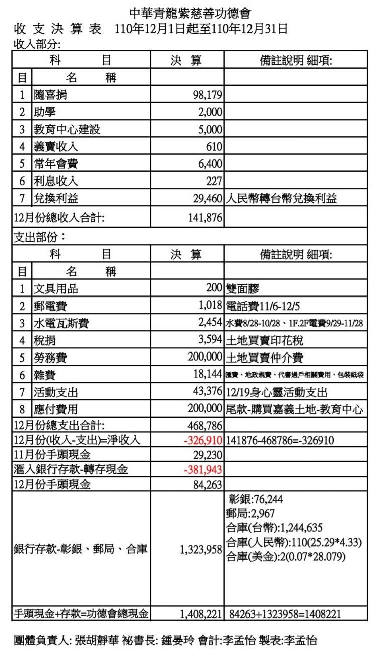 110年12月收支決算表與收入明細表
