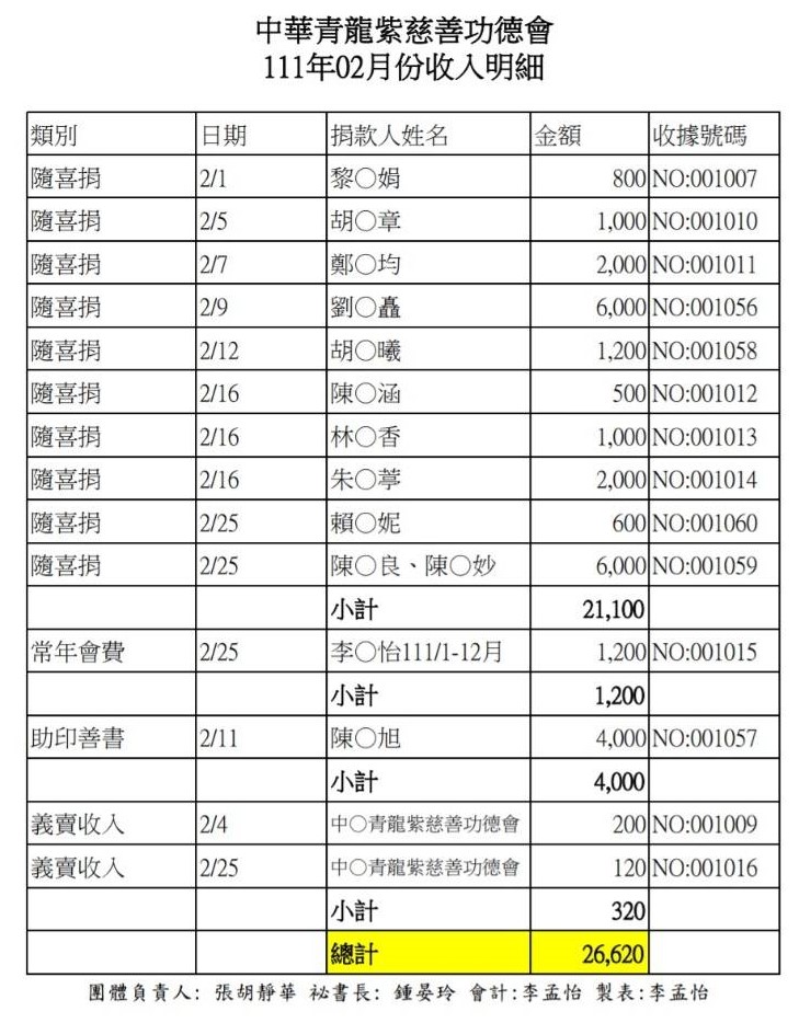 111年2月收支決算表與收入明細表