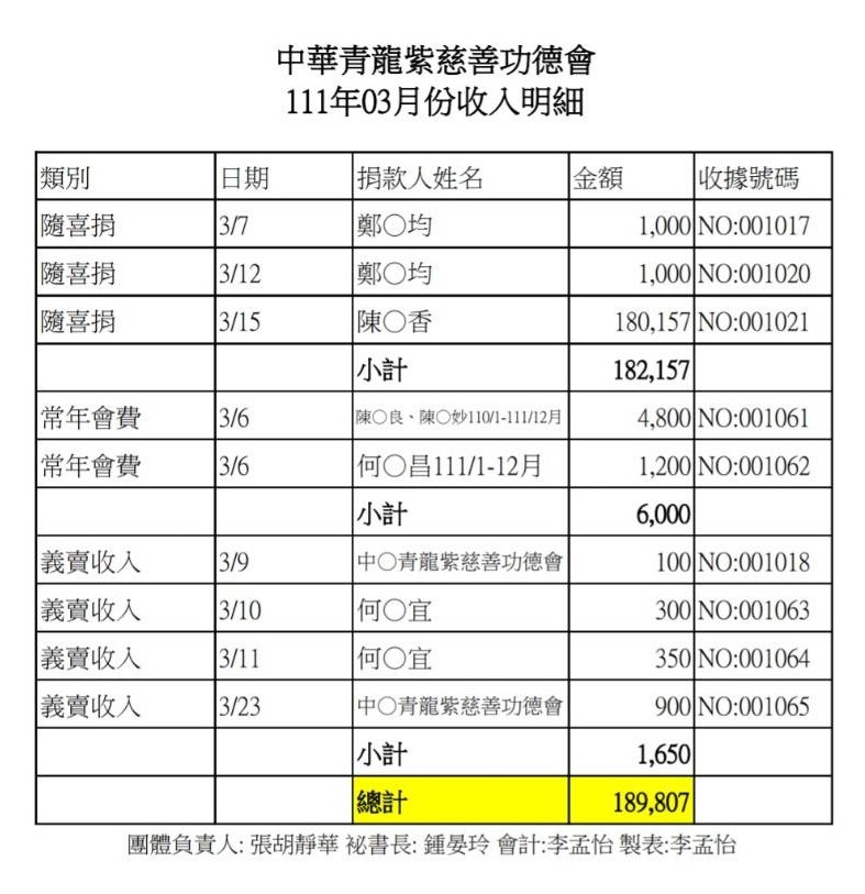 111年3月收支決算表與收入明細表