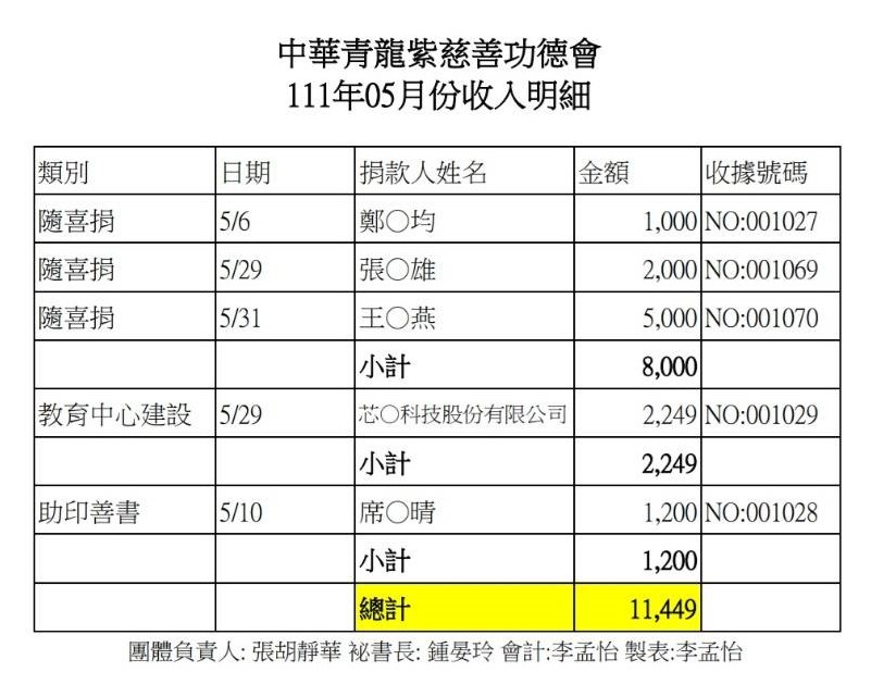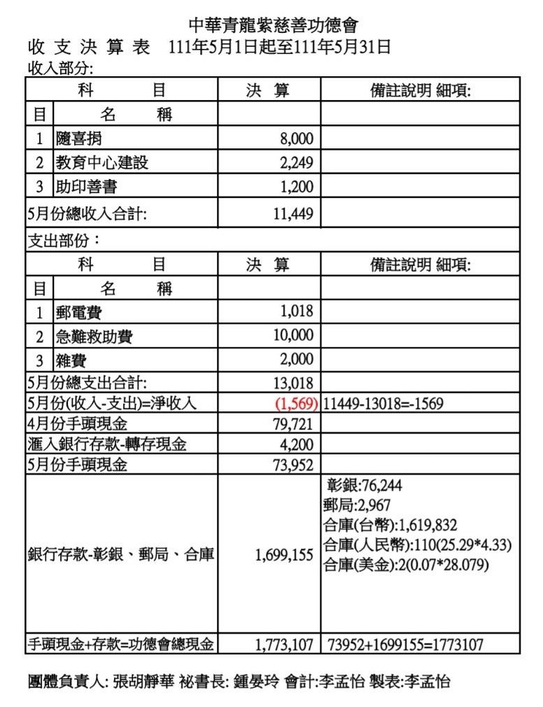 111年5月收支決算表與收入明細表