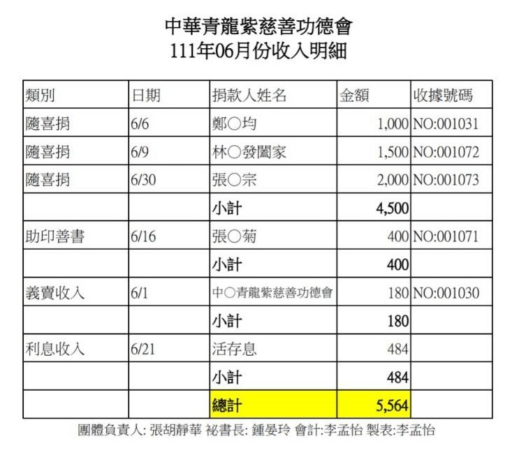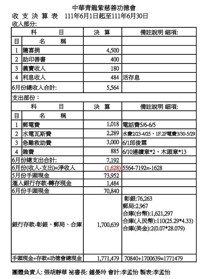 111年6月收支決算表與收入明細表