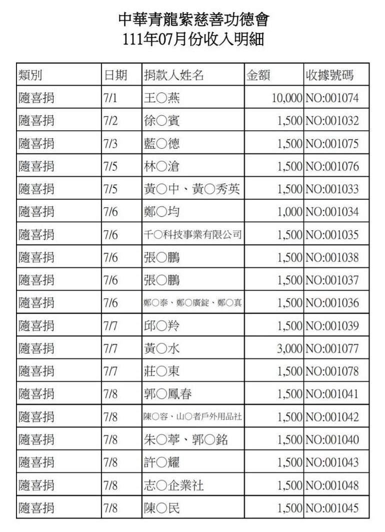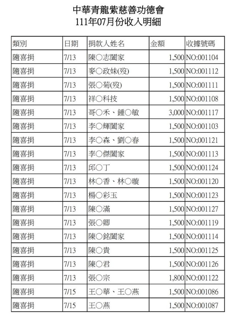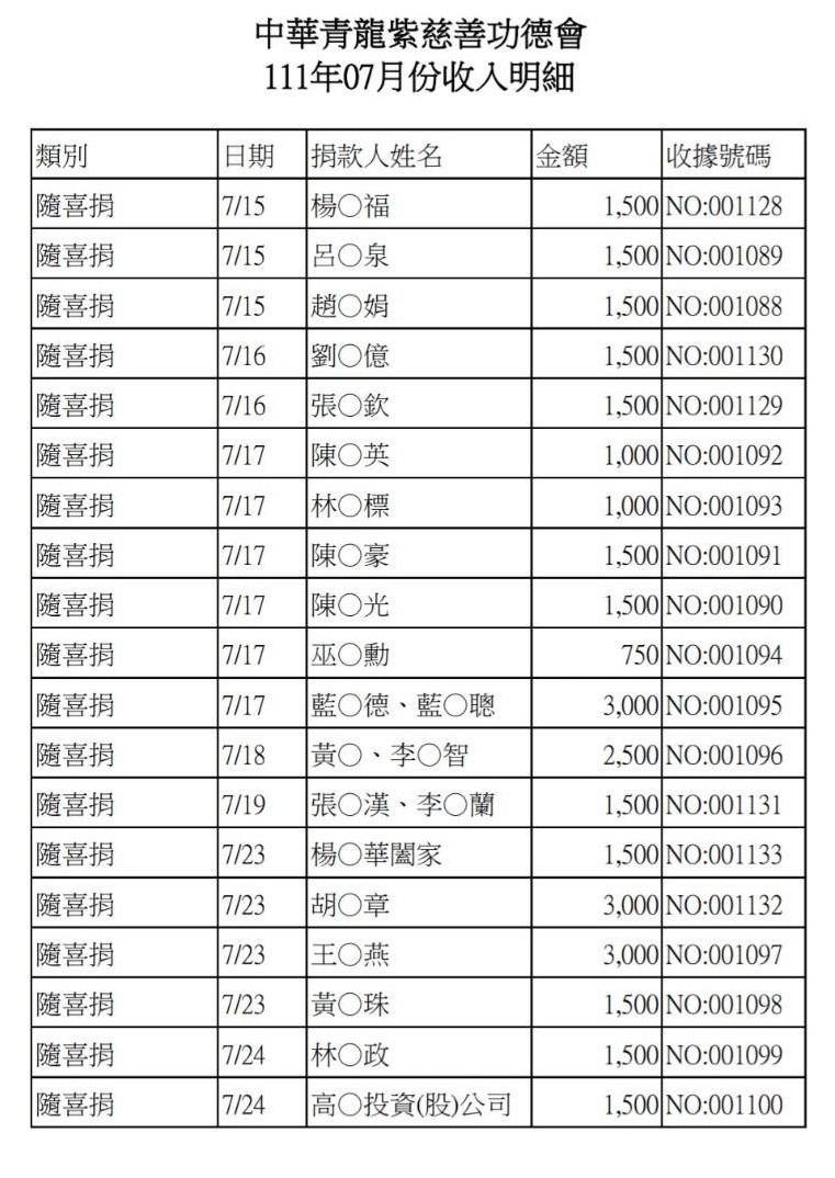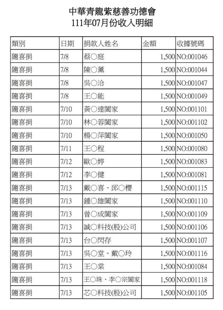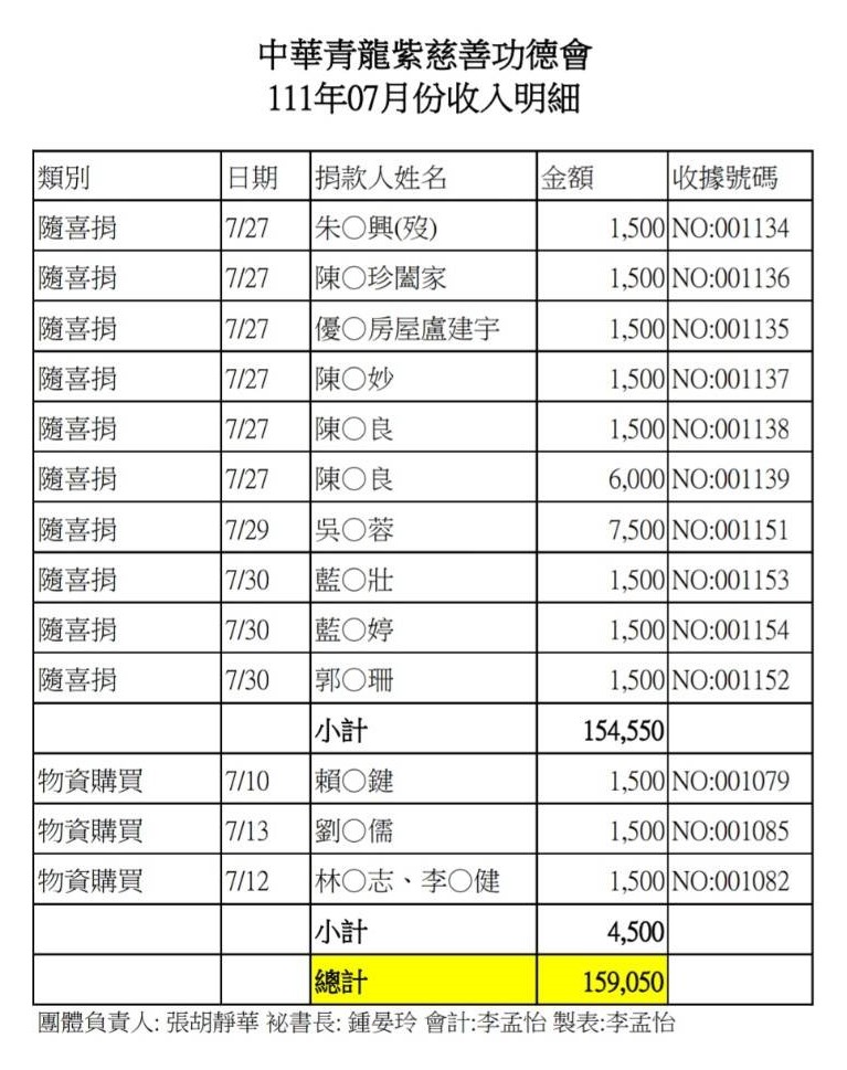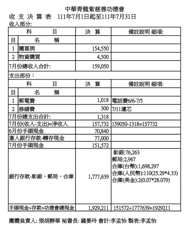 111年7月收支決算表與收入明細表