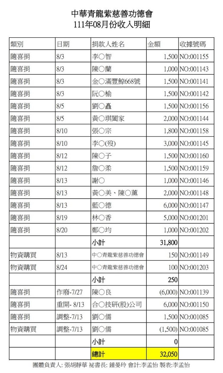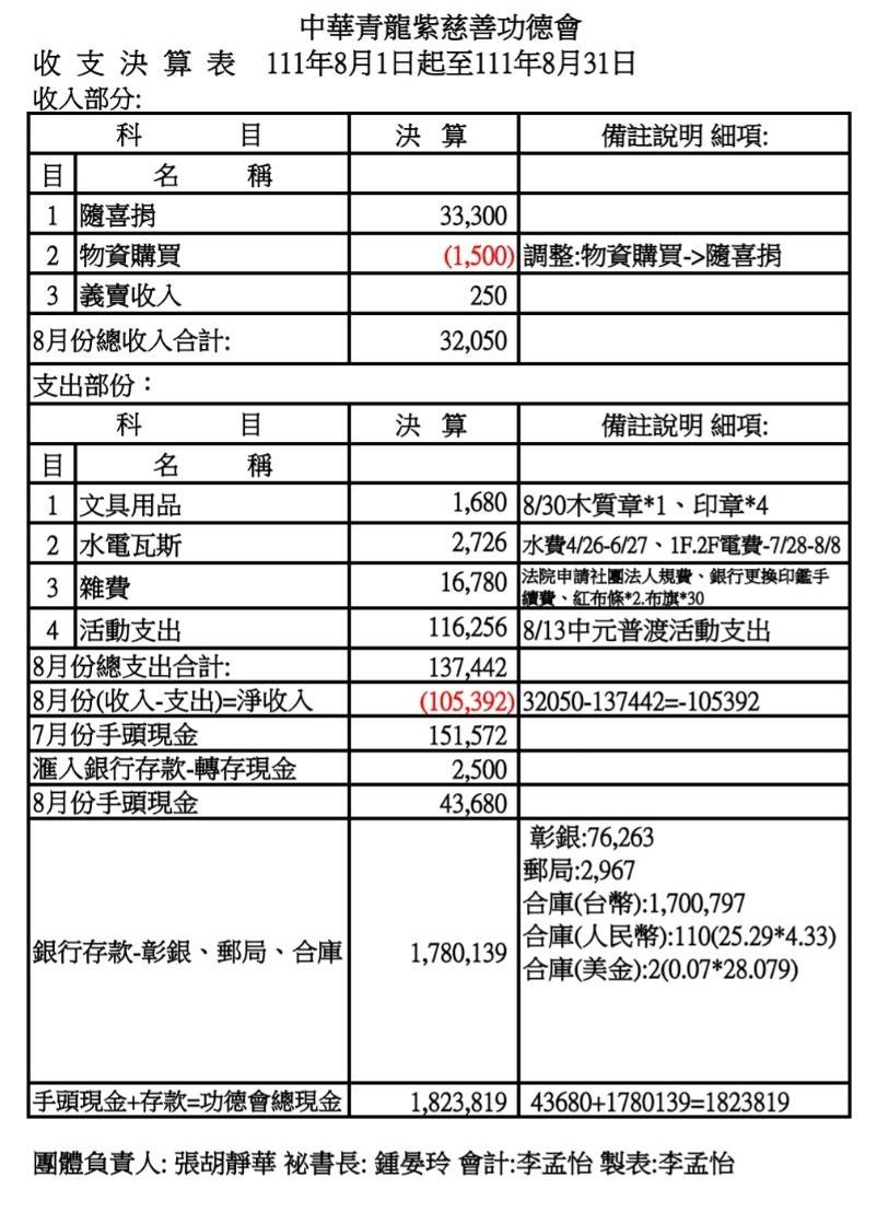 111年8月收支決算表與收入明細表